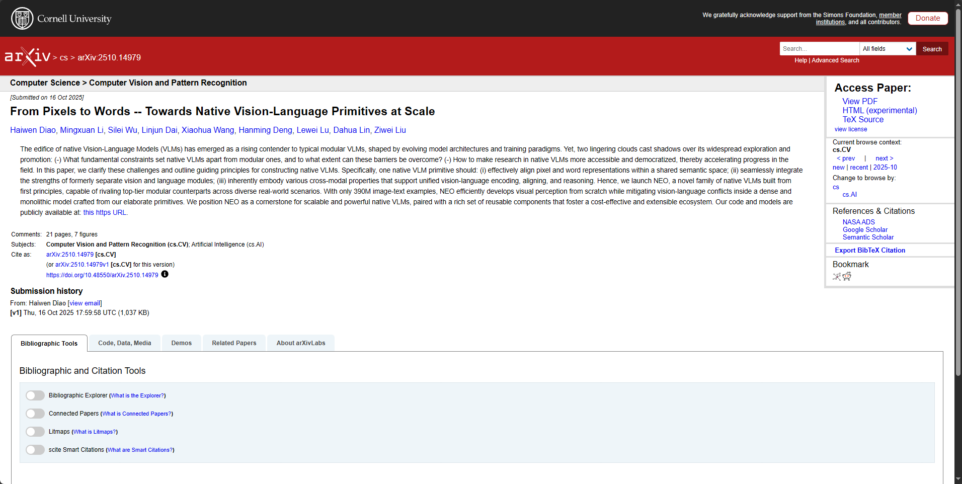 近日,商汤科技和南洋理工大学 S - Lab 联合发布并开源全新多模态模型架构 NEO,在人工智能领域引发广泛关注。NEO 的最大亮点是数据效率极高,只需业界同等性能模型 1/10 的数据量,即 3.9 亿图像文本示例,就能开发出顶尖视觉感知能力,且在多项视觉理解任务中追平顶级模块化旗舰模型,综合性能优于其他原生 VLM。主流多模态模型“拼凑”式设计存在学习效率低等弊端,而 NEO 从底层打破桎梏,通过三大关键维度创新,具备统一处理视觉与语言的能力。它还有两大核心技术创新,能更精细捕捉图像细节、提升对空间结构关联的利用率。这一成果能助力大家在工作中更高效处理复杂图文任务,提升工作效率和质量,值得一看!